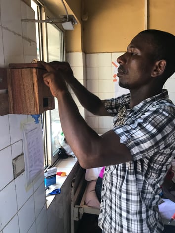 Photo: Enfin - le climatiseur qui permet qui permet des conditions de travail beaucoup plus agréable (28°C au lieu de 45°C) aux soins intensifs néonatals de l'INSE.