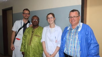 Photo ( de g à dr): Prof Telly Sy: Méd. Chef du Service de Gynéco-Obstétrique de l'Hôpital Universitaire Ignace Deen à Conakry et Chair de la Pédiatrie à l'Université de Conakry, Prof. Matthias Roth-Kleiner: Président de souffle2vie; Prof. Namory Keita: Méd. Chef du Service de Gynéco-Obstétrique de l'Hôpital Universitaire Donka à Conakry et Président de la Société Africaine de Gynéco-Obstétrique; Prof. Papa Mouktar Faye, Méd. Chef de la Néonatologie à Dakar, Sénégal et Prof. Pathé Diallo, Ancien ministre de Santé de la Guinée et Médecin Chef de l'Oncologie à l'Hôpital Universitaire de Donka.