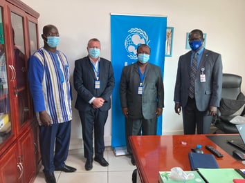 Légende: de g à dr.: Dr. A Ouedraogo (UNICEF), Pr. M. Roth-Kleiner (souffle2vie et CHUV), Dr. I.S. Diallo (INSE), M. P. Ngom (UNICEF).