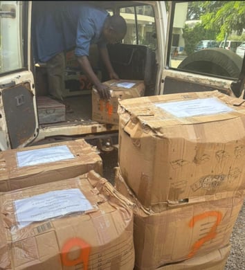 Ces dernières 3 années, plus de 50'000 bonnets en plusieurs centaines de cartons nous ont été envoyées par an Malgré notre grand réseau en Guinée, l'offre a largement dépassé le besoin et des lieu de stockage se sont multipliés et remplis. Ces stocks existants vont nous servir les prochains 2 à 3 ans à répondre aux besoins.