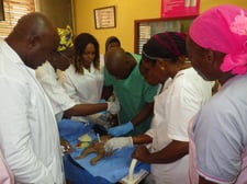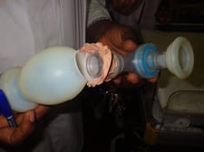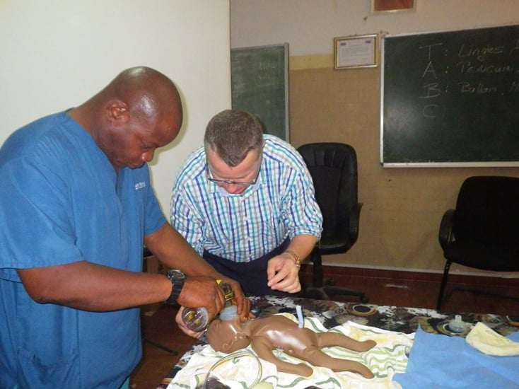 "Aider les bébés à respirer" est un concept simple et efficace de formation avec du matériel adapté aux pays en développement. Un tel kit contient un ballon pour ventiler et un outil d'aspiration en forme de pingouin pour faire l'ABC de base de la réanimation des nouveau-nés.